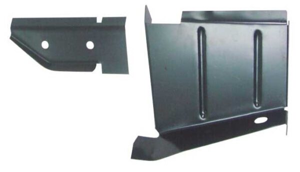 Fits between the front of the rocker panel and frame rail. Often, they rust since they mount directly behind the front tires and receive all the road splash.